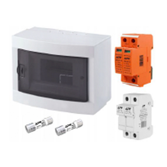 Entrada para un String, máximo voltaje del fusible 1.000V, máxima intensidad del fusible 20A (intercambiable), máxima intensidad de descarga del sobretensiones 40kA. Protección contra sobretensiones transitorias, como los rayos para instalaciones fotovoltaicas.