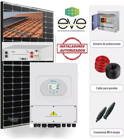 Kit Solar Aislada 10 6300|12600 Wh/día Deye: Produce hasta 10.000 Wh día en verano y 5.000 Wh día en invierno. Un kit de aislada de altas prestaciones con inversor de 3000 W híbrido de ultima generación.
