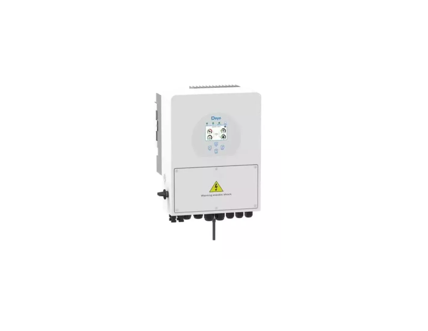 1 inversor Inversor Híbrido 48V 5000W Deye 500V: El inversor Deye 5.000 W es un equipo que dispone de un potente cargador de baterías de 140 amperios, un regulador MPPT de 500 V con hasta 5.900 W en potencia solar admisible (10 paneles de 500W). El inversor Deye tiene 5 años de garantía y es un equipo sellado IP65 con larga vida útil. Dispone de antena WiFi gratuita y portal de monitorización donde poder visualizar nuestro sistema. Además su gran pantalla Lcd nos permite tener un control perfecto de nuestro sistema, aportando todos los datos necesarios.