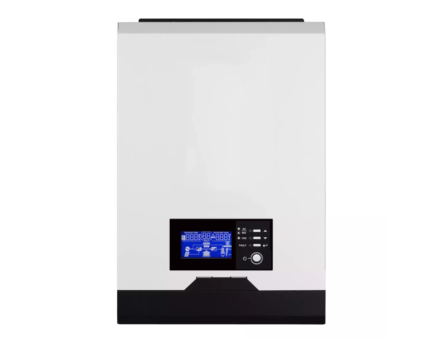 1 inversor híbrido 12 1000 axpert mppt 40: El inversor híbrido axpert es un equipo multifunción que dispone de un inversor de onda pura de 1000 W nominales y 2000 W de pico, un regulador de carga mppt de 40Ah y un cargador de baterías de 20Ah. Al ser el regulador de tipo mppt obtenemos el máximo de potencía del panel en cada momento del día. El cargador incorporado de 20Ah se puede utilizar conectando un generador para recargar la batería cuando este baja y además suministrar electricidad a la vivienda . Software watchpower de monitorización y cable de conexión incluido